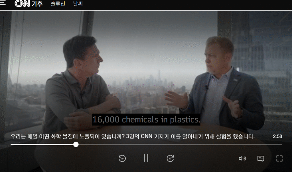 런던, 뉴욕, 홍콩… 유럽, 아시아, 북미 3곳의 기자가 독성 화학물질에 대한 일상 노출을 알아보기 위해 화학물질 모니터링 손목밴드를 착용하였습니다. 5일 간 착용하고 일상생활을 한 후 검출한 결과 비스페놀A, 난연제, UV안정제, 프탈레이트과 같은 플라스틱에 들어있는 유해물질이 검출되었다고 합니다. 손목밴드에서는 총 20여 가지 유해물질을 검출하였고, 플라스틱 제품과 상관이 있는 물질이라고 해요. 모두 유해물질을 피하기 위해 개인적으로 노력했지만, 개인적인 노력만으로는 유해물질 노출에서 벗어날 수 있다는 사실을 보여줍니다. 영상을 함께 보시죠!