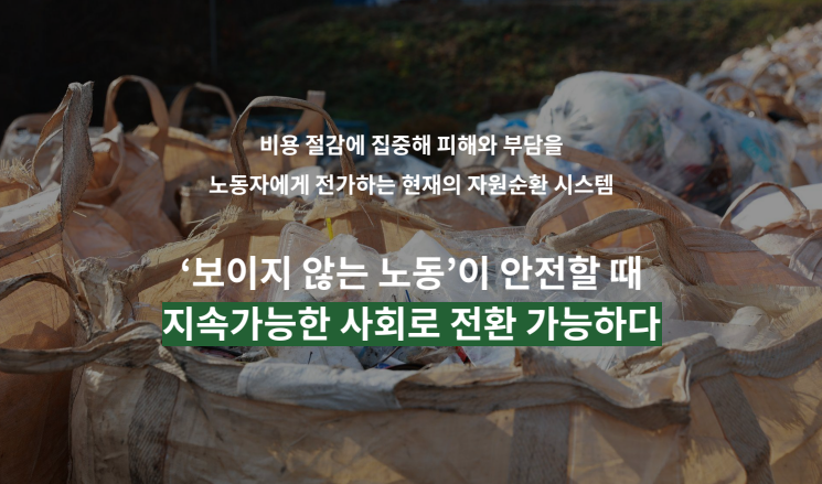 재활용률을 어떻게 높일까만큼 중요한 것은 바로 사람의 노동. 노동자에게 위험이 전가되지 않는 사회를 만들어야.