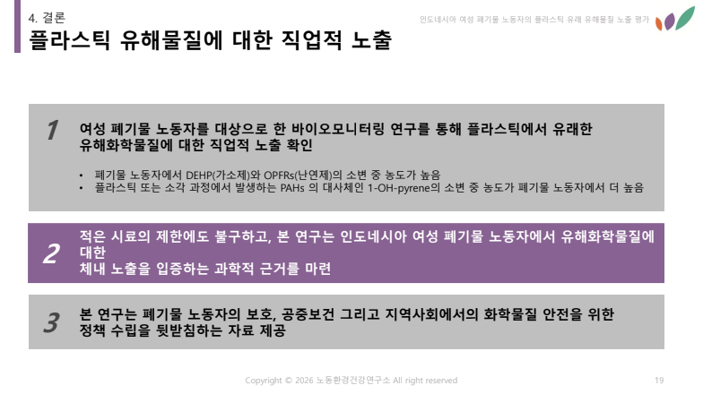 발제1 인도네시아 여성 폐기물 노동자의 플라스틱 유래 유해물질 노출 평가 by 최인자 박사